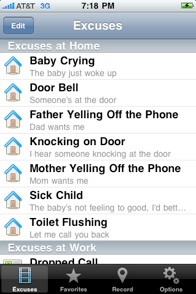 You can also record your own excuses right from with the Excuse Master application to amaze your friends and get off the phone with others :)